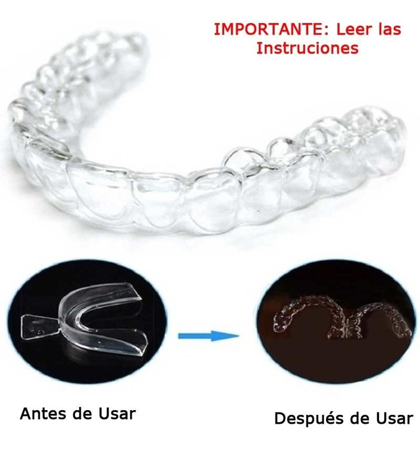 ### Características del producto: – **Protector bucal antibruxismo y antironquidos**: Ideal para proteger los dientes y reducir el rechinamiento durante la noche. – **Material termoplástico moldeable**: Se ajusta cómodamente a la forma de tus dientes con un proceso de personalización sencillo. – **Tamaño compacto**: 6,3 cm x 5 cm, fácil de usar y transportar. – **Proceso de ajuste fácil**: Se ablanda en agua caliente para amoldarlo a la dentadura. – **Paquete**: Incluye 2 o 4 bandejas de blanqueamiento dental. Perfecto para mejorar la salud bucal y el descanso nocturno.
