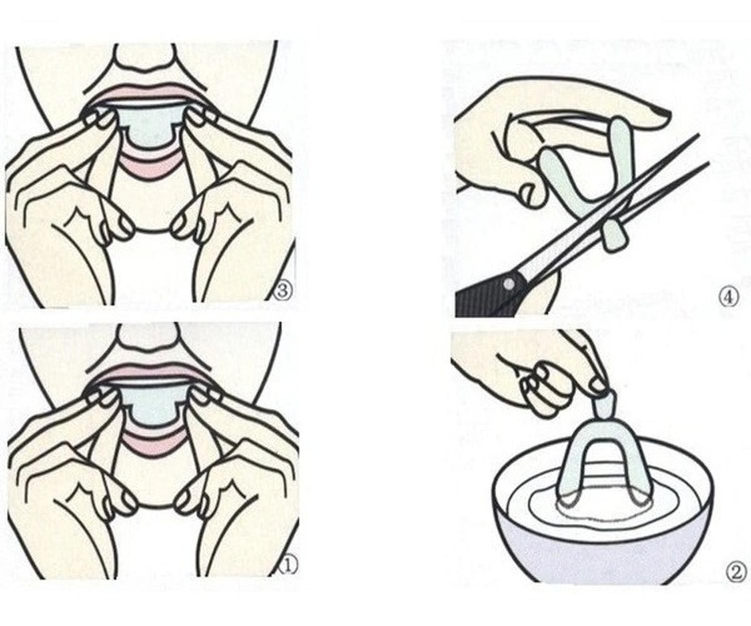 1. Para amoldar: coloque en la parte superior del paladar, succionando todo el aire de entre la dentadura y las encías, haciendo que el protector pueda envolver toda la superficie de la fila de dientes. Práctica repetida dos veces, que es un proceso importante