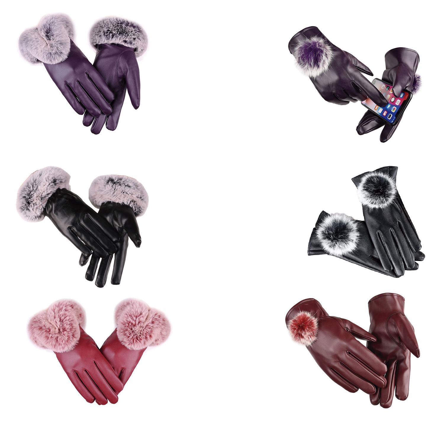 Guantes elegantes de piel sintética diseñados para mujer, ideales para otoño e invierno. Confeccionados en cuero PU, cuentan con forro de lana de conejo Rex para mayor calidez y funcionalidad táctil en pantallas. Disponibles en talla única y colores negro, rojo y púrpura, ofrecen estilo, resistencia al viento y comodidad, siendo una excelente opción como regalo.