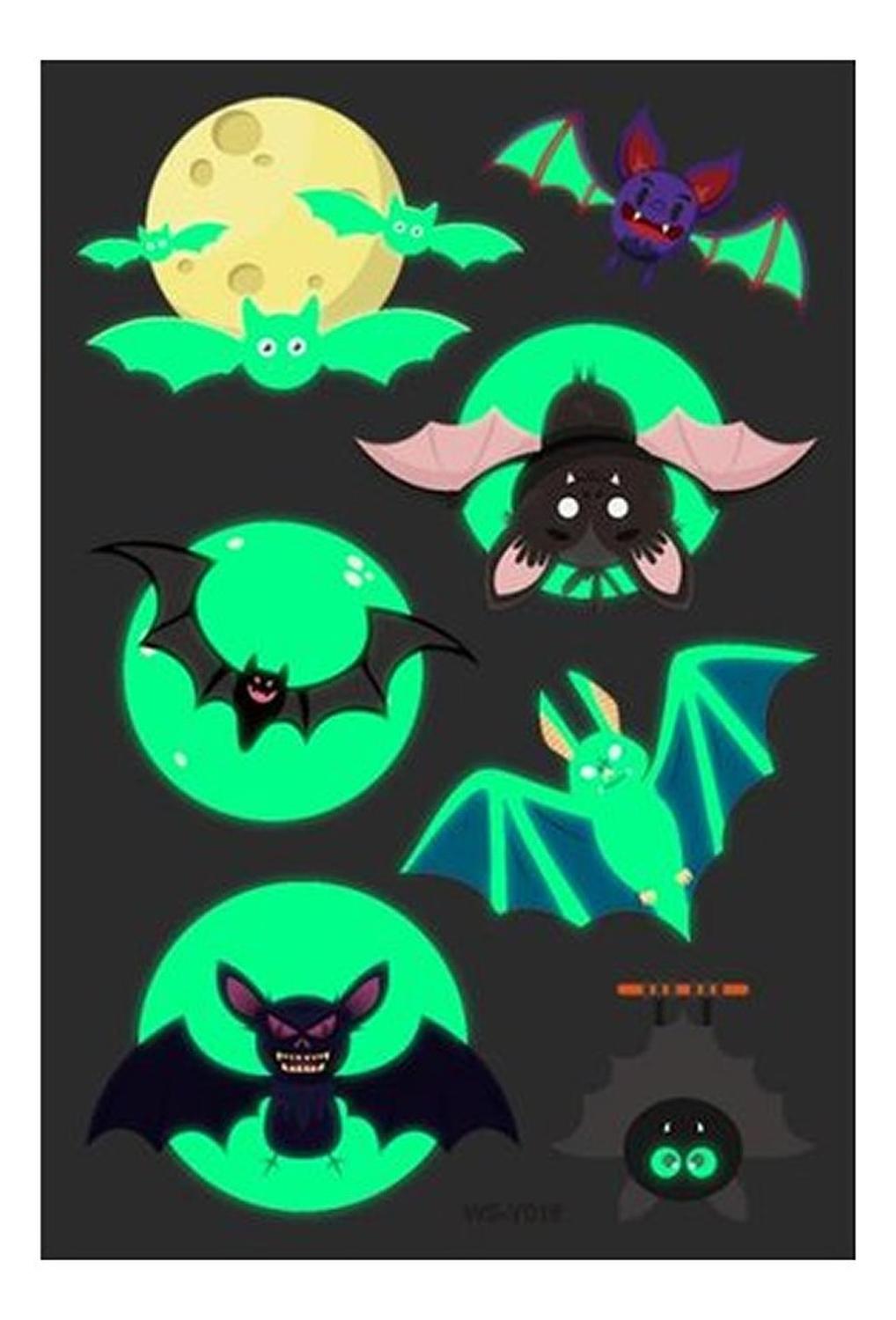 Rocooart tatuaje luminoso de Halloween murciélago que brilla en la oscuridad pegatinas de tatuaje temporal impermeables